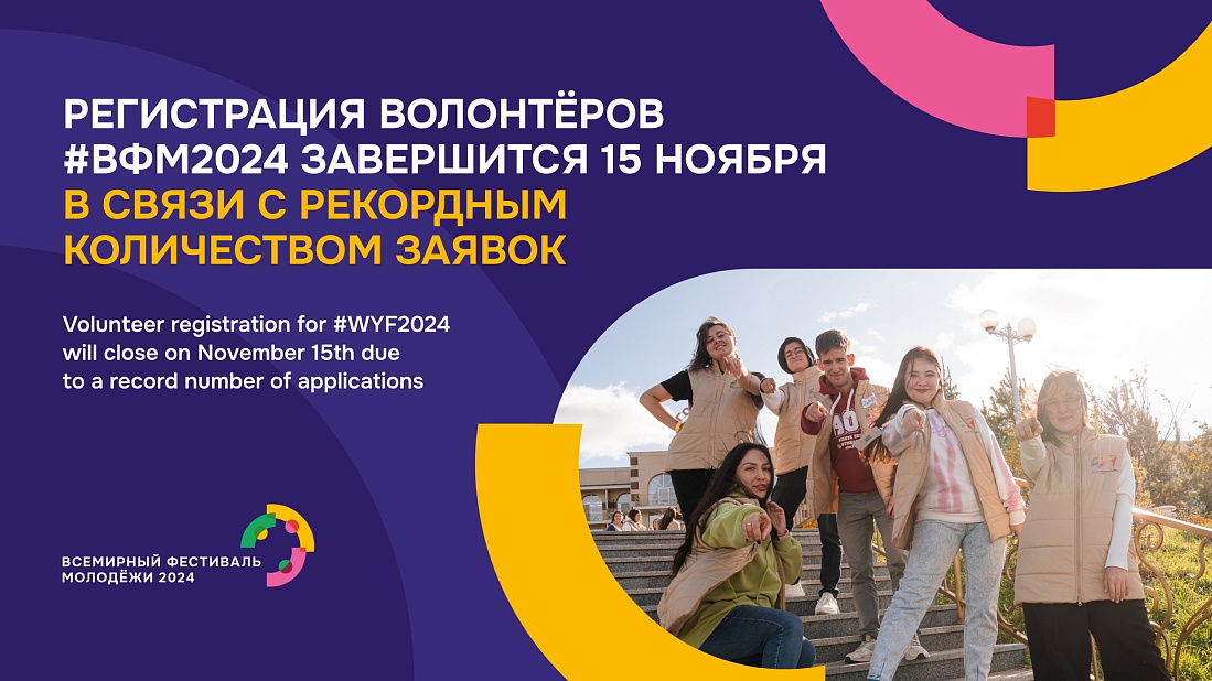 У всех желающих остается шанс присоединиться к волонтерскому корпусу, регистрация на сайте fest2024.dobro.ru открыта до 15 ноября. Необходимо заполнить 2 части анкеты, затем пройти тестирование и получить приглашение для записи на интервью на сайте ДОБРО.РФ.