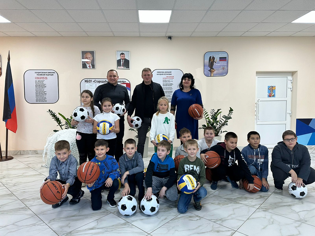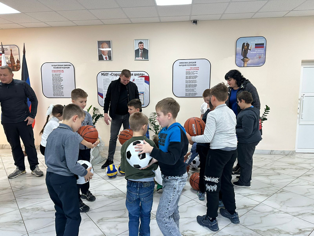 Он также посетил отремонтированную школу в Стародубовке. Там ребятам вручили спортивный инвентарь.
