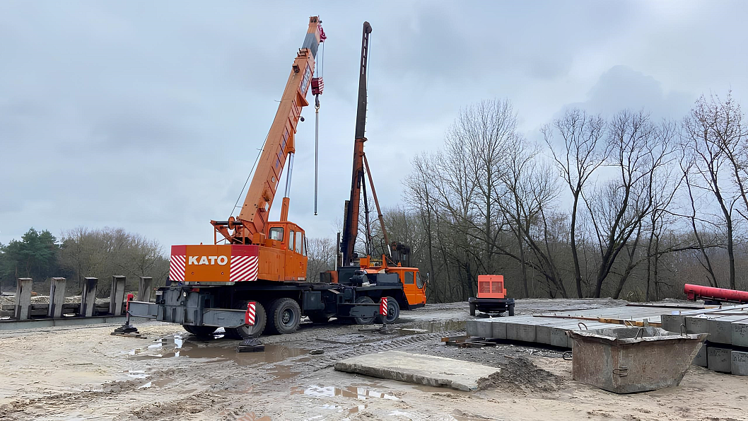 В Курске ведутся строительно-монтажные работы по устройству моста через реку Сейм