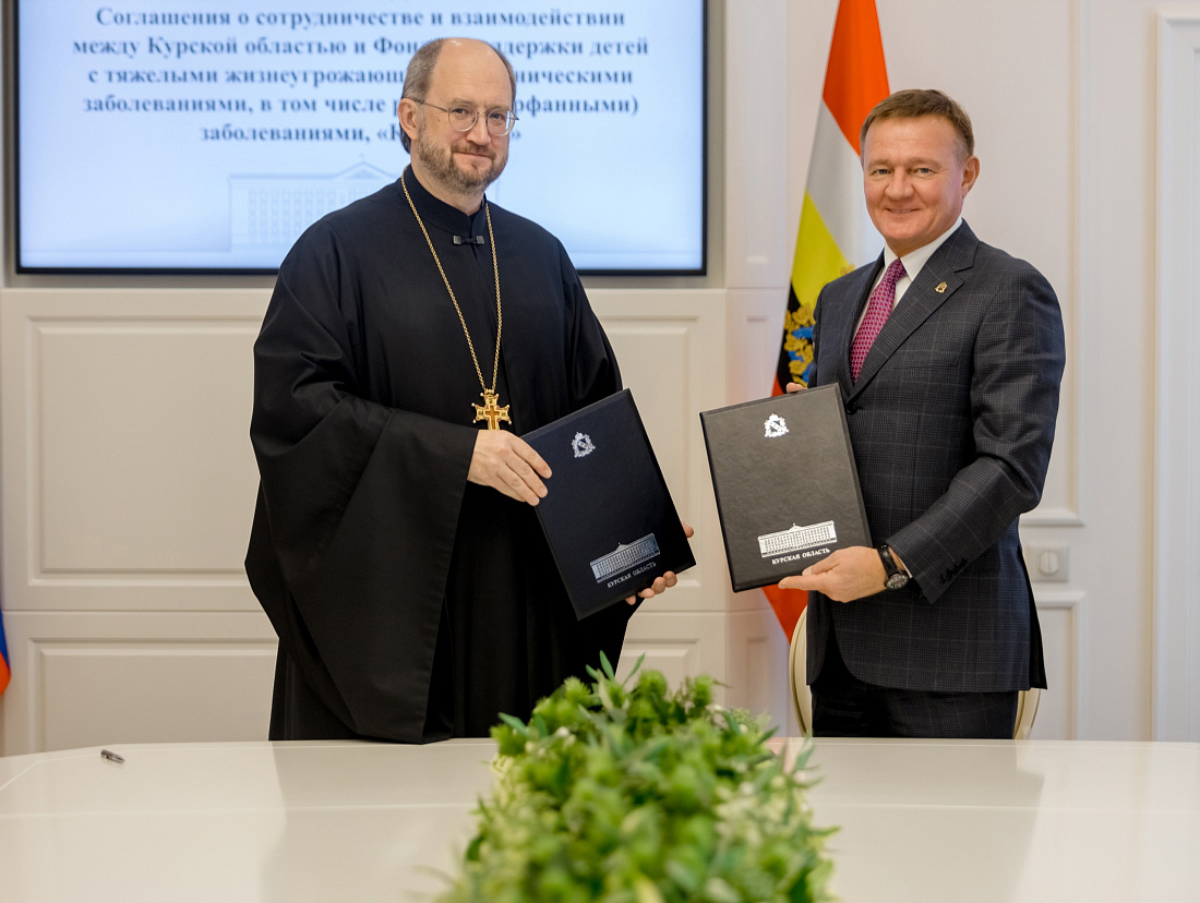 Результаты взаимодействия Фонда и перспективы дальнейшего сотрудничества обсудили губернатор Курской области Роман Старовойт и председатель правления Фонда «Круг добра», председатель Комиссии Общественной палаты России по вопросам социального партнёрства, попечения и развитию инклюзивных практик протоиерей Александр Ткаченко. Кроме того, стороны подписали Соглашение о сотрудничестве и взаимодействии.