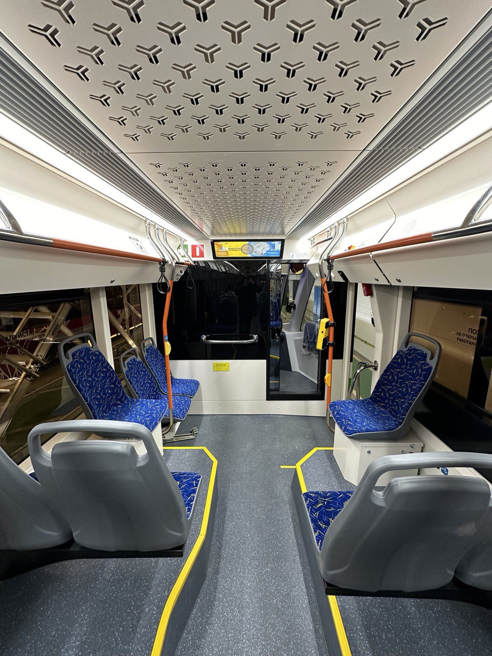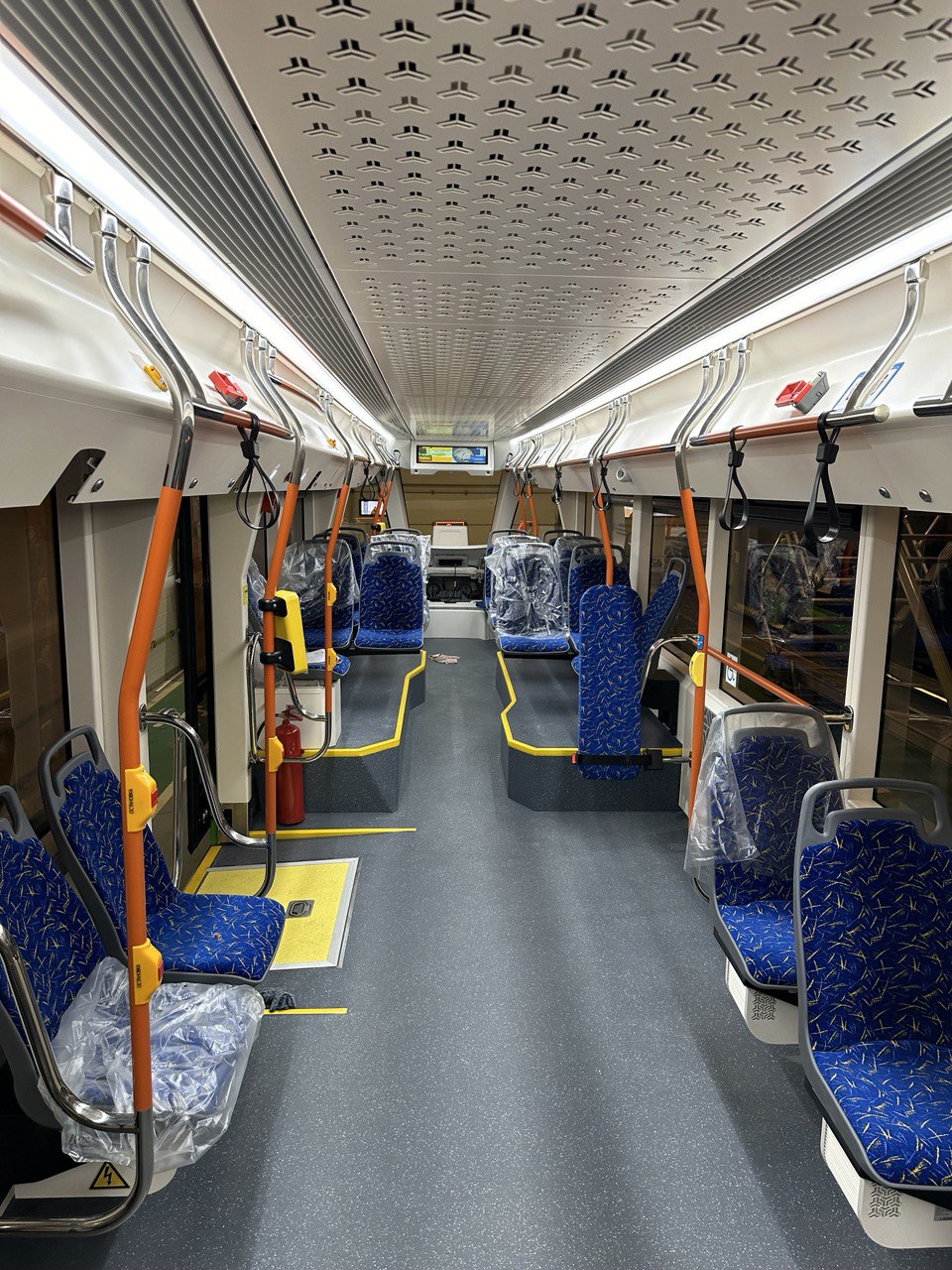 Вагон «Львенка» имеет 4 двери с увеличенной шириной проема. В нем 40 посадочных мест, максимальная вместимость - 160 пассажиров. Трамвай оснащен системой климат-контроля и электронным табло. Перед выходом на маршруты все вагоны оснастят валидаторами для бесконтактной оплаты. Оборудование подвижного состава обеспечивает комфорт для всех пассажиров, в том числе для лиц с ограниченными возможностями здоровья.