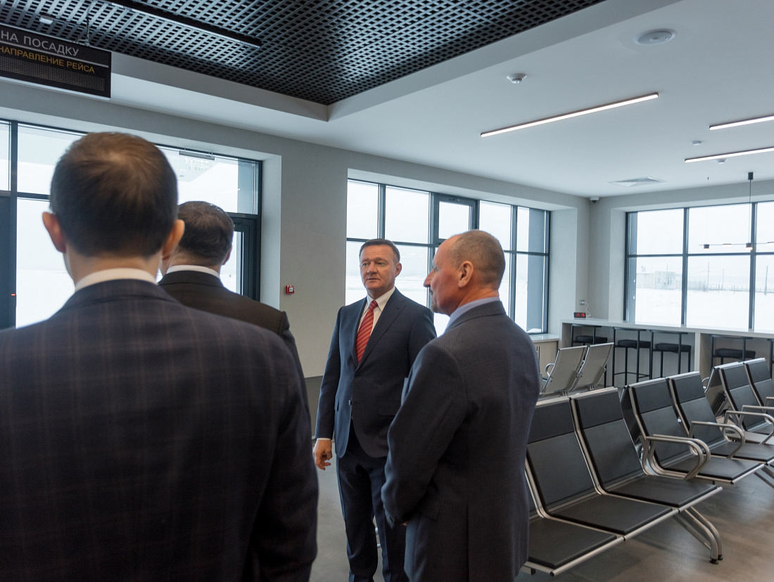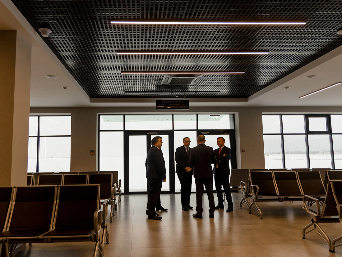 После осмотра залов ожидания, комнаты матери и ребенка, зоны досмотра и хранения багажа Андрей Костюк отметил высокое качество проведенных работ и поблагодарил всех участников реализации проекта, включая работников аэропорта и строителей.