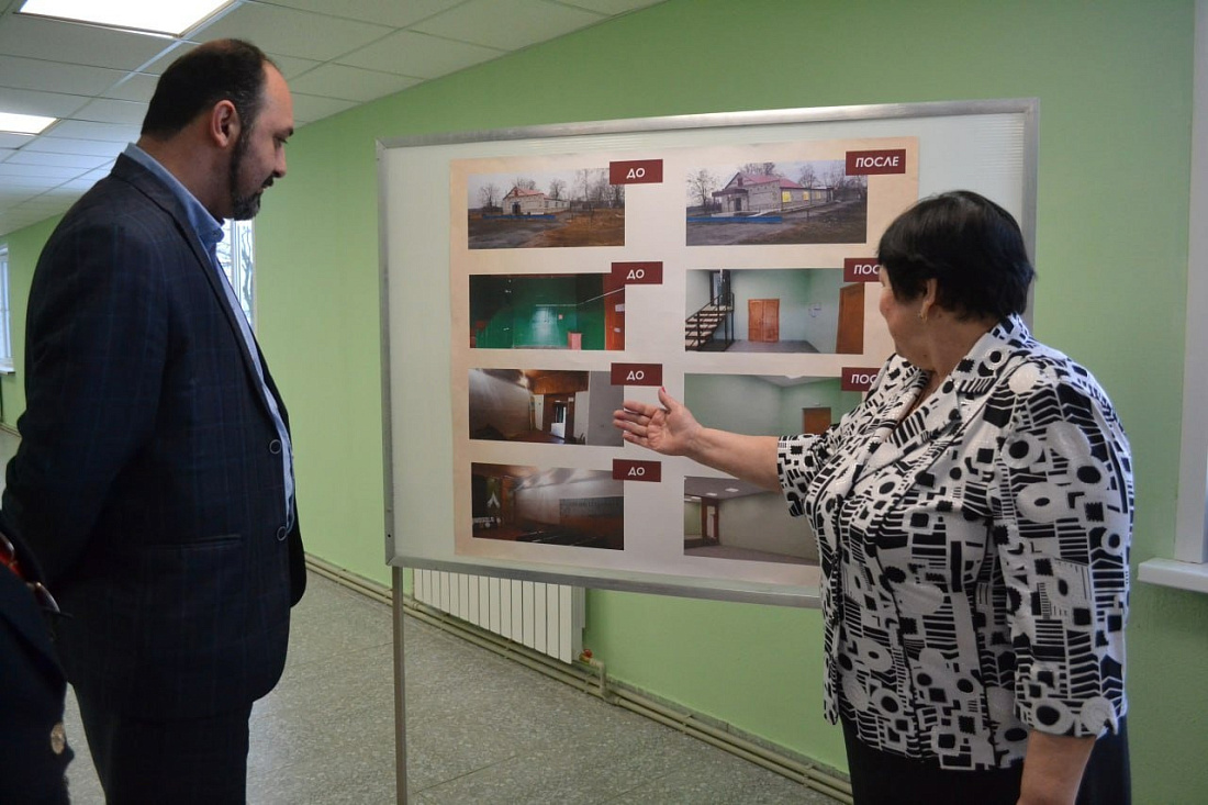 В ходе ремонта выполнены устройство входных групп и монтаж сцены, проведена отделка внутренних помещений, установлены новые оконные блоки, заменено напольное покрытие. В настоящий момент завершаются работы по подключению газового оборудования и подаче тепла в здание. В декабре после их окончания в обновленном ДК будут организованы праздничные новогодние и другие мероприятия.