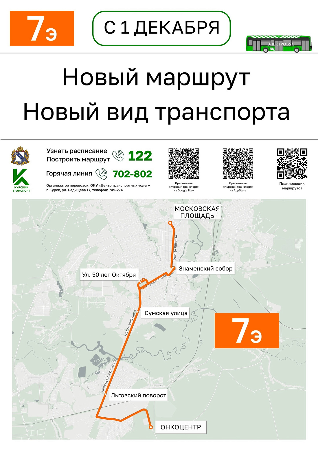 Актуальная схема движения общественного транспорта в Курске доступна на сайте: https://new.kurskmap.ru/img/newWeb.png. Для организации маршрута жители могут воспользоваться приложениями «Курский транспорт» и «Яндекс». Также операторы контакт-центра по единому номеру 122 предоставляют справочную информацию для тех, у кого нет доступа в интернет.