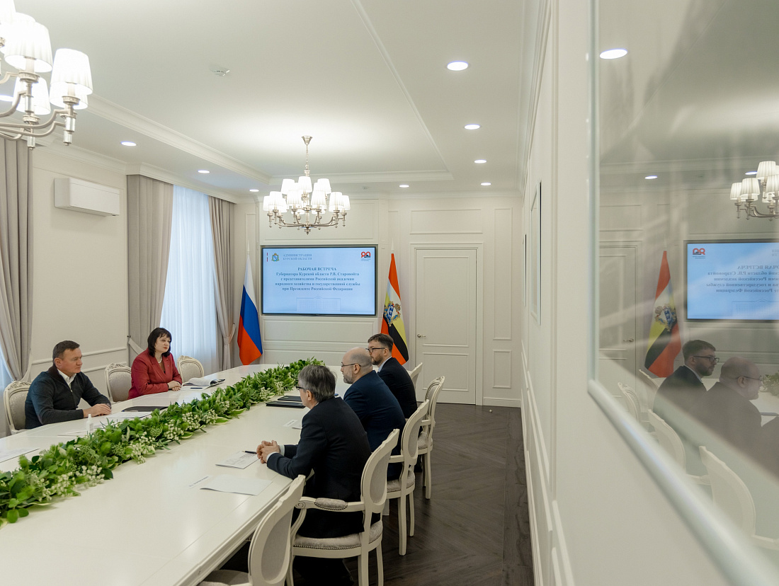 Губернатор Курской области Роман Старовойт провел рабочую встречу с представителями Российской академии народного хозяйства и государственной службы при Президенте Российской Федерации. Стороны обсудили совместную работу по подготовке резерва управленческих кадров для государственной и муниципальной службы в регионе, рассмотрели направления взаимодействия.