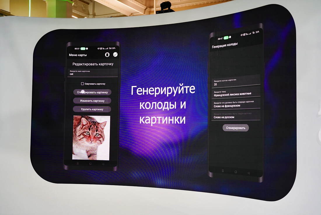 Студент КГУ, технический специалист Олег Фролов представил проект Flipcards. Это приложение, которое поможет запомнить необходимую информацию с помощью специальных карточек. Виртуальный сервис имеет ряд преимуществ: удобный маркет колод, функции социальной сети, искусственного интеллекта, автоматическое составление плана повторений и другие.