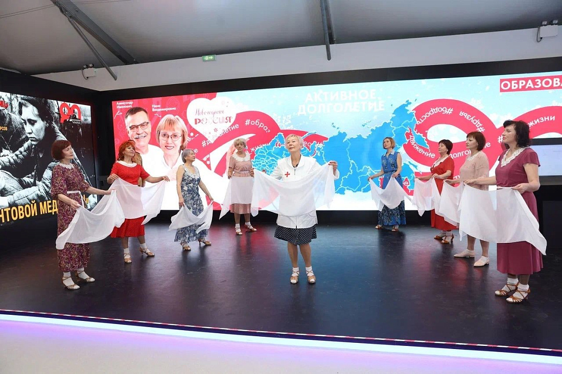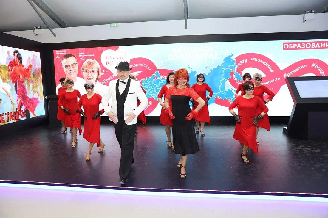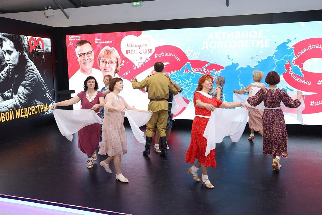 На Международной выставке-форуме «Россия» в выставочном павильоне Минтруда РФ в рамках работы стенда «Семья. Работа. Долголетие» выступил коллектив школы «Танцы без границ» проекта «Курское долголетие».