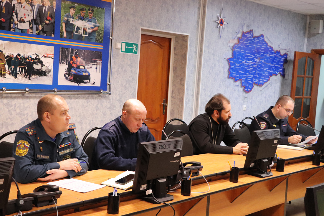 В Курске состоялось заседание оперативного штаба комиссии по предупреждению и ликвидации чрезвычайных ситуаций и обеспечению пожарной безопасности региона. Обсуждался вопрос обеспечения комплексной безопасности при подготовке и проведении празднования Крещения Господня.