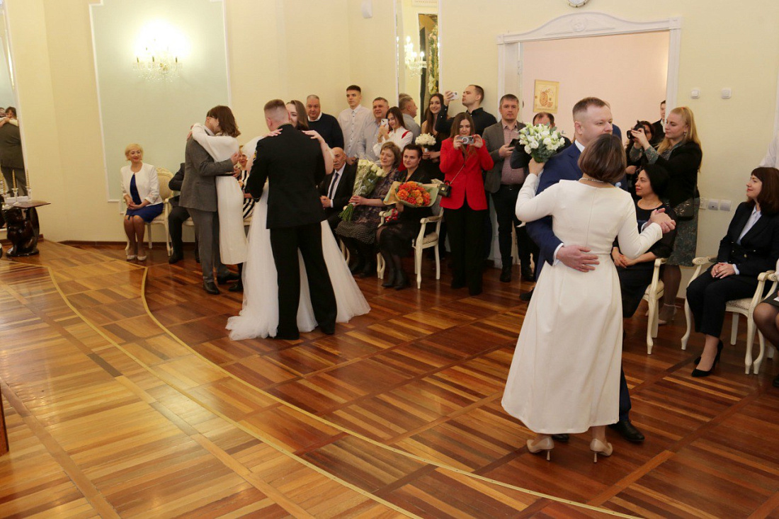 В Курске 3 пары одновременно приняли участие в торжественной церемонии бракосочетания