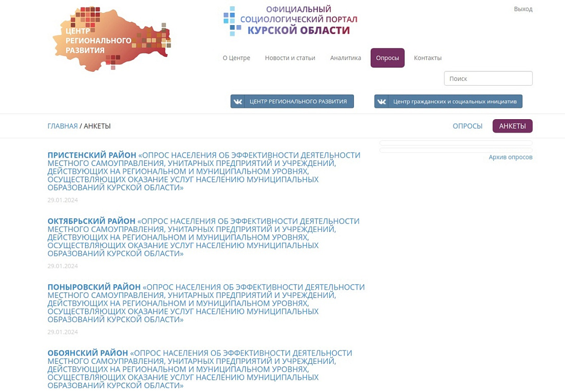 Анкета для заполнения размещена на Официальном социологическом портале Курской области в разделе «Опросы/Анкеты»: https://соцпортал46.рф/survey/.