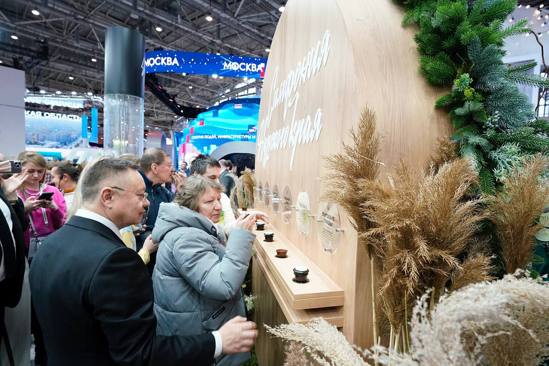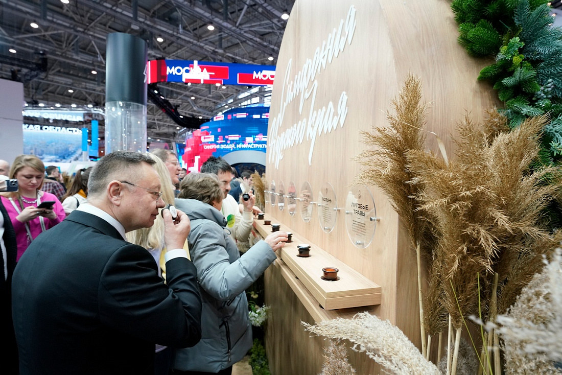 В ходе тематического дня министр строительства и ЖКХ РФ Ирек Файзуллин осмотрел экспозицию Курской области, где представлены достопримечательности, история и достижения нашего региона. Внимание главы Минстроя также привлек стенд с ароматами Курского края, запечатанными в специальные колбы, в которых запахи разнотравья, зеленого яблока, свежеиспеченного хлеба, молнии и железа.