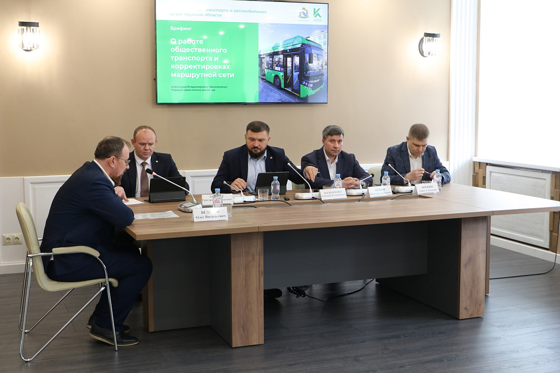 В Доме журналиста состоялся брифинг, посвященный работе общественного транспорта и корректировкам маршрутной сети Курска. В нем приняли участие первый заместитель министра транспорта и автомобильных дорог Курской области Александр Васильченко, первый заместитель главы Курска Николай Цыбин и представители ОКУ «Центр транспортных услуг».