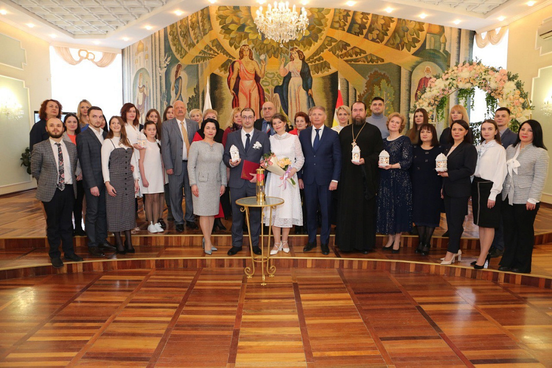 Частицу семейного очага «Сердце России» привезла в Курск молодая семья Лазаревых. Олег и Мария представляли наш регион на Всероссийском семейном форуме «Родные - Любимые» и вступили в брак в День Курской области. Лампаду передали в управление ЗАГС Центрального округа Курска. В торжественной церемонии принял участие заместитель губернатора Андрей Белостоцкий.