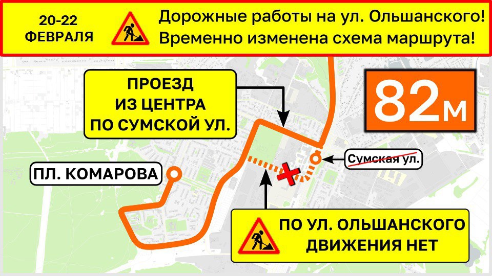 Автобусы маршрута 82м вместо улицы Ольшанского будут следовать по Сумской и Заводской улицам.