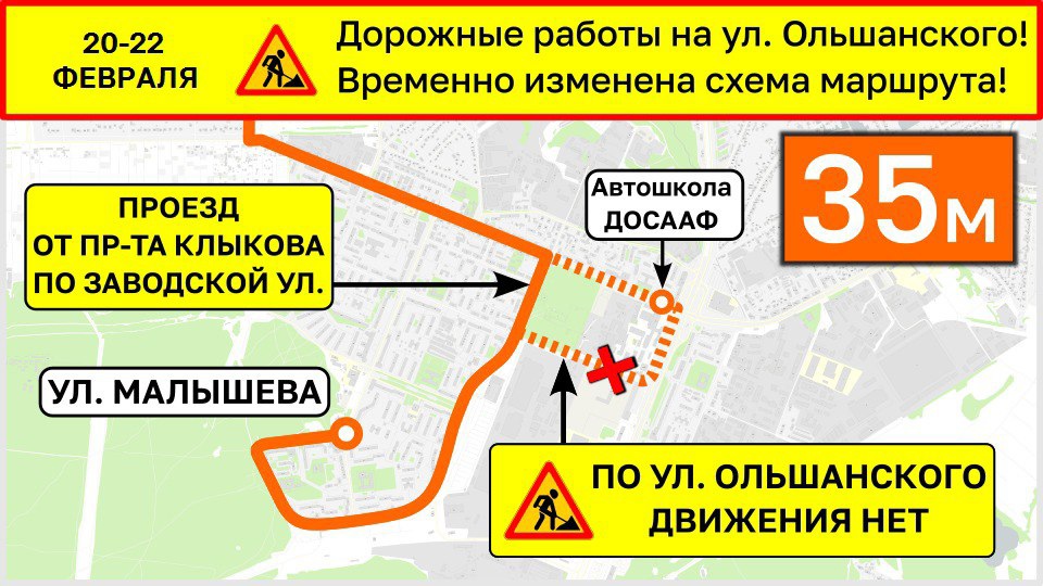 На время проведения работ схема движения по маршрутам 35м и 82м будет временно изменена.