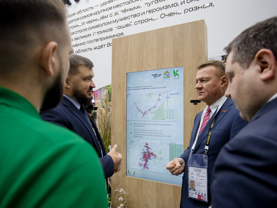 Перед посещением основного пленарного заседания глава региона осмотрел павильон Курской области. Он был изменен в соответствии с тематикой дня. На стенде представлена экспозиция, рассказывающая об истории курского общественного транспорта. После её посещения гости могут пройти квест и проверить свои знания. Также для желающих подготовлен фирменный мерч городского транспорта.