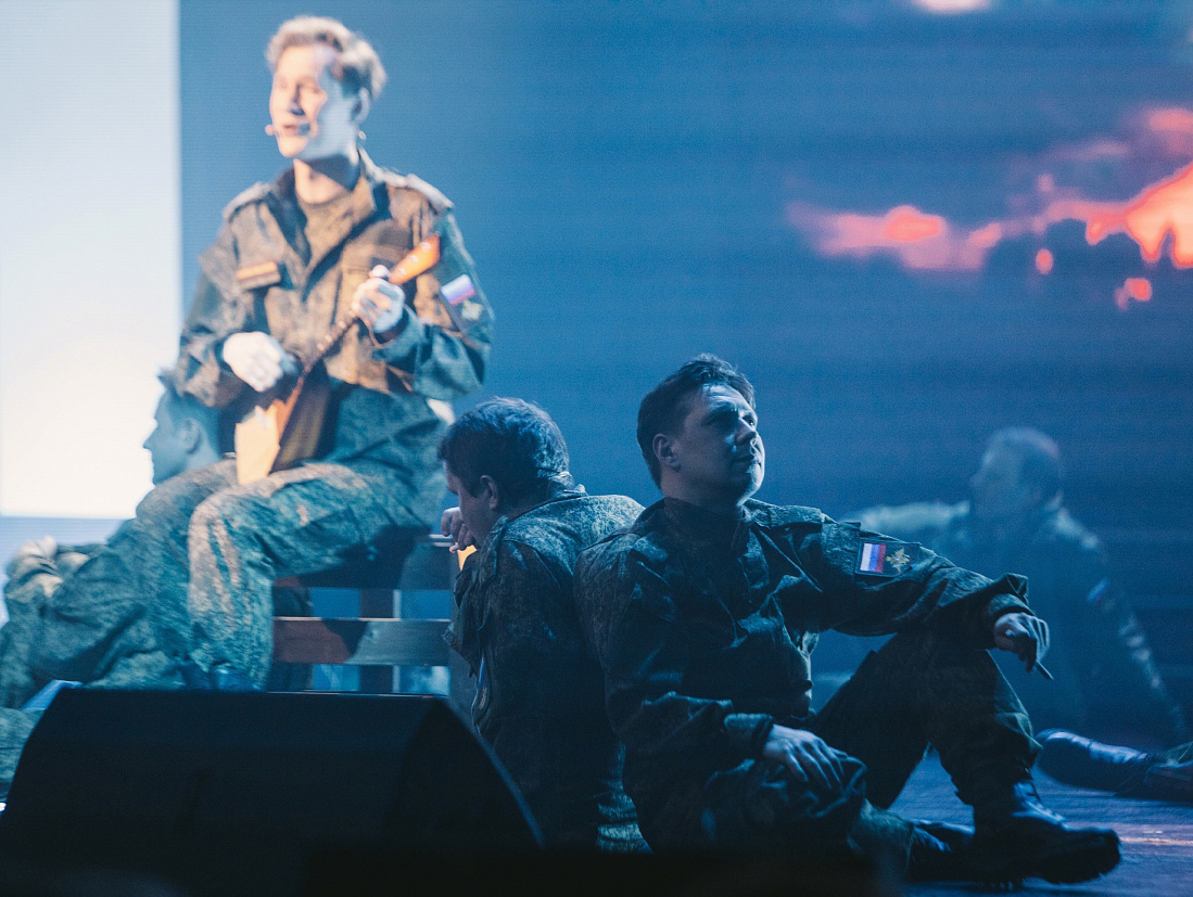 Со сцены прозвучали пронзительные истории о героях, защищающих страну, о борьбе и потерях, любви и победе. В основе постановки подлинные документы, стихотворения и письма, свидетельства очевидцев и репортажи военных корреспондентов, кадры с мест сражений.