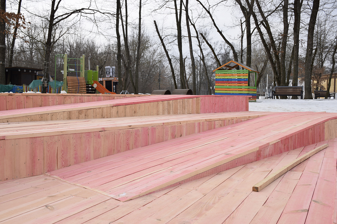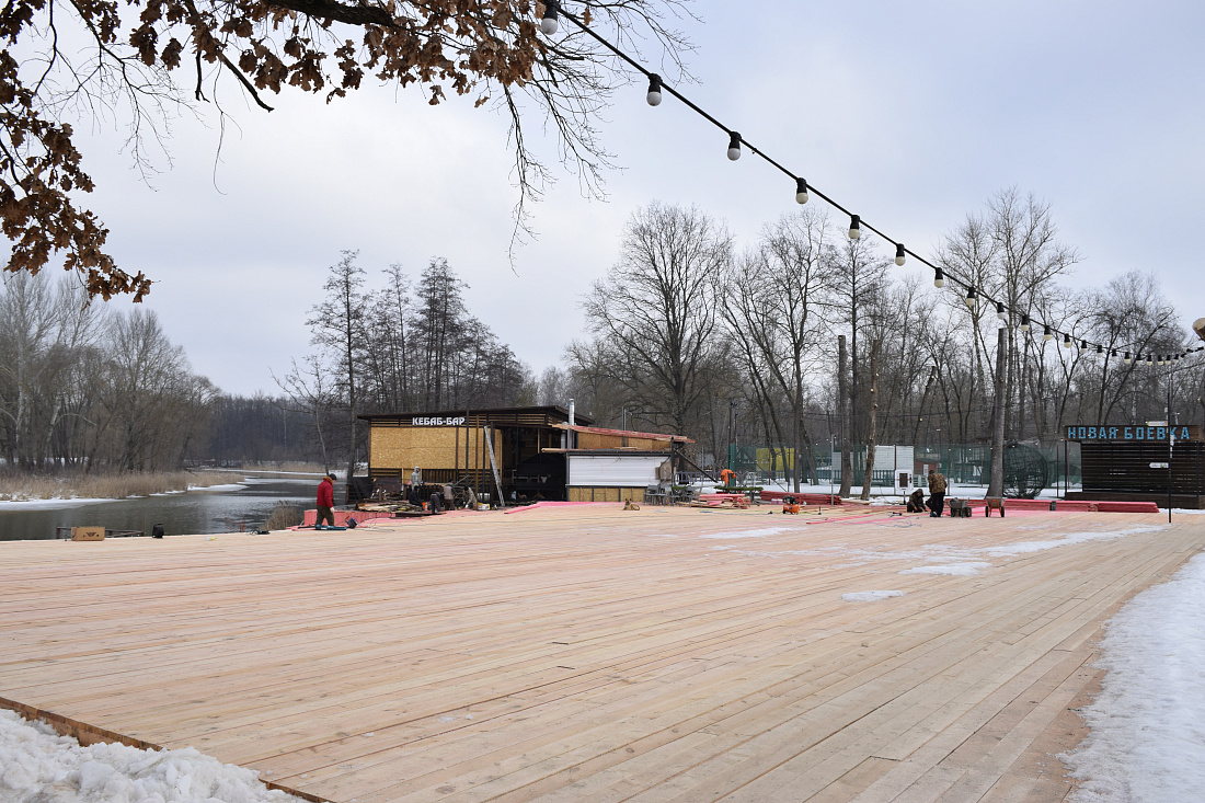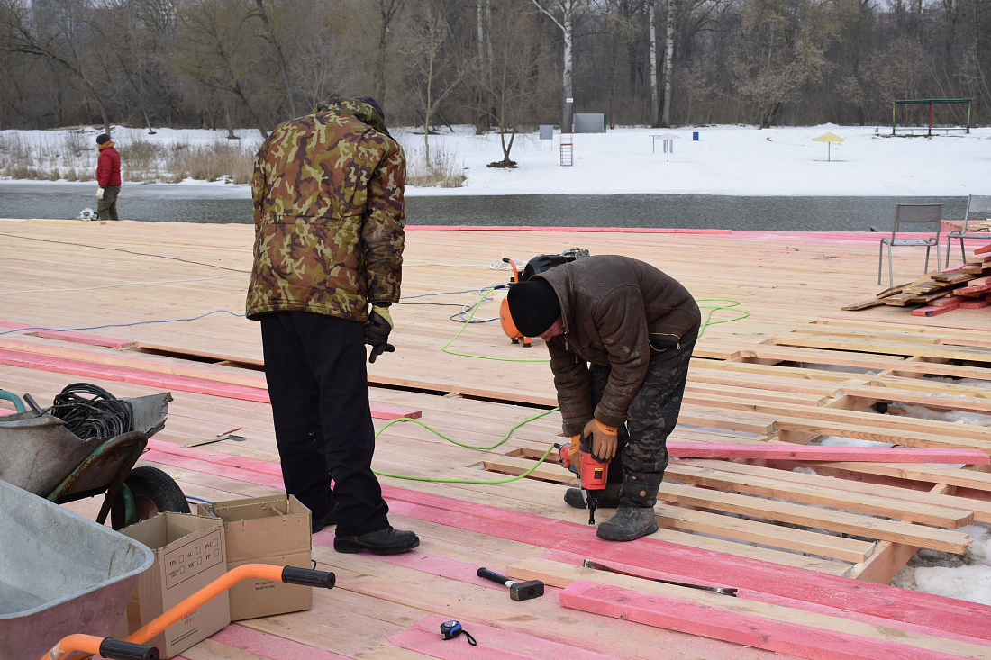 На Новой Боевке продолжается возведение деревянного пешеходного настила и понтона. Уже установлены санитарные модули, в том числе оборудованные для маломобильных групп населения. Здесь также поставят кабинки для переодевания, душевые кабины, шезлонги, оборудуют детскую площадку.