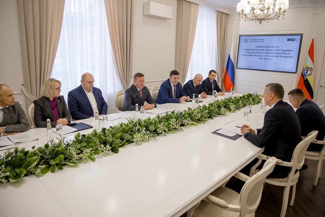 Курск посетил Чрезвычайный и Полномочный Посол Республики Беларусь в Российской Федерации Дмитрий Крутой. Он провел рабочую встречу с губернатором Курской области Романом Старовойтом, на которой обсуждались вопросы торгово-экономического сотрудничества, взаимодействия в промышленной и строительной сферах, развитии туризма и кооперации между предприятиями.