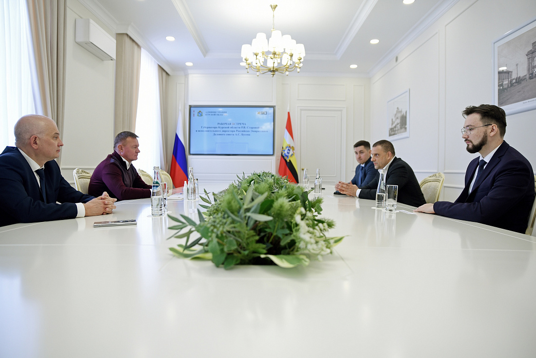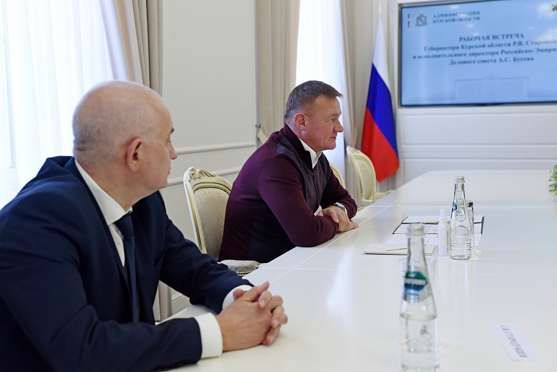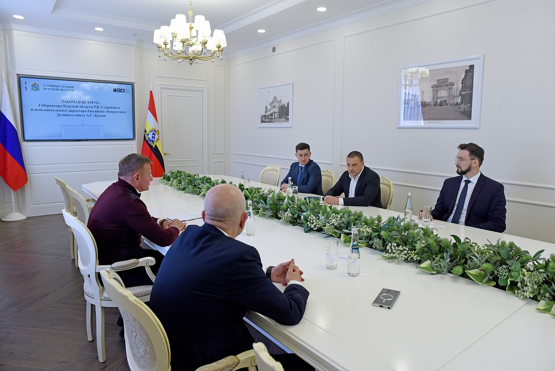 Губернатор Курской области Роман Старовойт провел рабочую встречу с исполнительным директором Российско-Эмиратского Делового совета Алексеем Бусевым и обсудил перспективы сотрудничества региона с Объединёнными Арабскими Эмиратами.