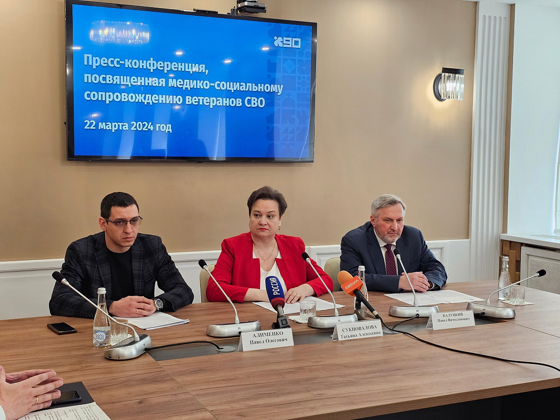 В Доме журналиста прошла пресс-конференция, посвященная медико-социальному сопровождению ветеранов специальной военной операции. В ней приняли участие министр социального обеспечения, материнства и детства Курской области Татьяна Сукновалова, первый заместитель министра здравоохранения региона Павел Калуцкий и заместитель министра здравоохранения Павел Алименко.
