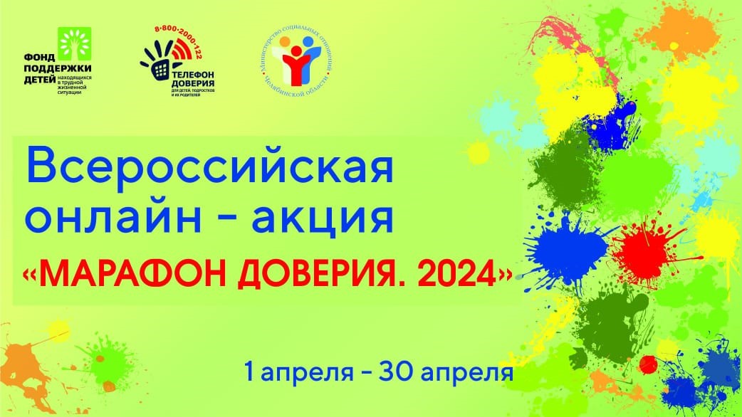 С 1 по 30 апреля Курская область участвует во Всероссийской онлайн-акции «Марафон доверия. 2024», приуроченной к Международному дню детского телефона доверия (17 мая) и организованной Фондом поддержки детей, находящихся в трудной жизненной ситуации.