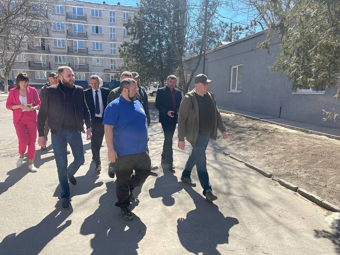 Первый заместитель губернатора - председатель Правительства Курской области Алексей Смирнов, генеральный директор Корпорации развития региона Владимир Лукин и заместитель председателя Правительства Курской области - министр природных ресурсов Константин Поляков в ходе рабочей поездки в ДНР посетили город Мариуполь. Они осмотрели ряд ранее отремонтированных объектов, а также те, которые подлежат восстановлению в этом году.