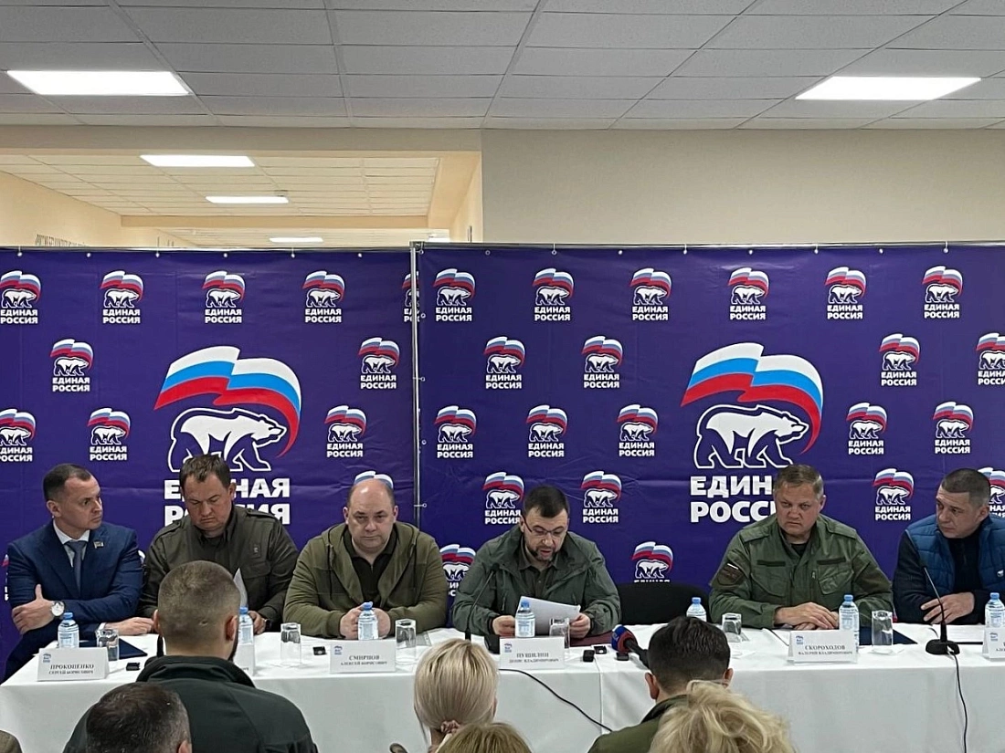На территории школы прошло заседание партии «Единая Россия». В нем принял участие глава Донецкой Народной Республики Денис Пушилин.