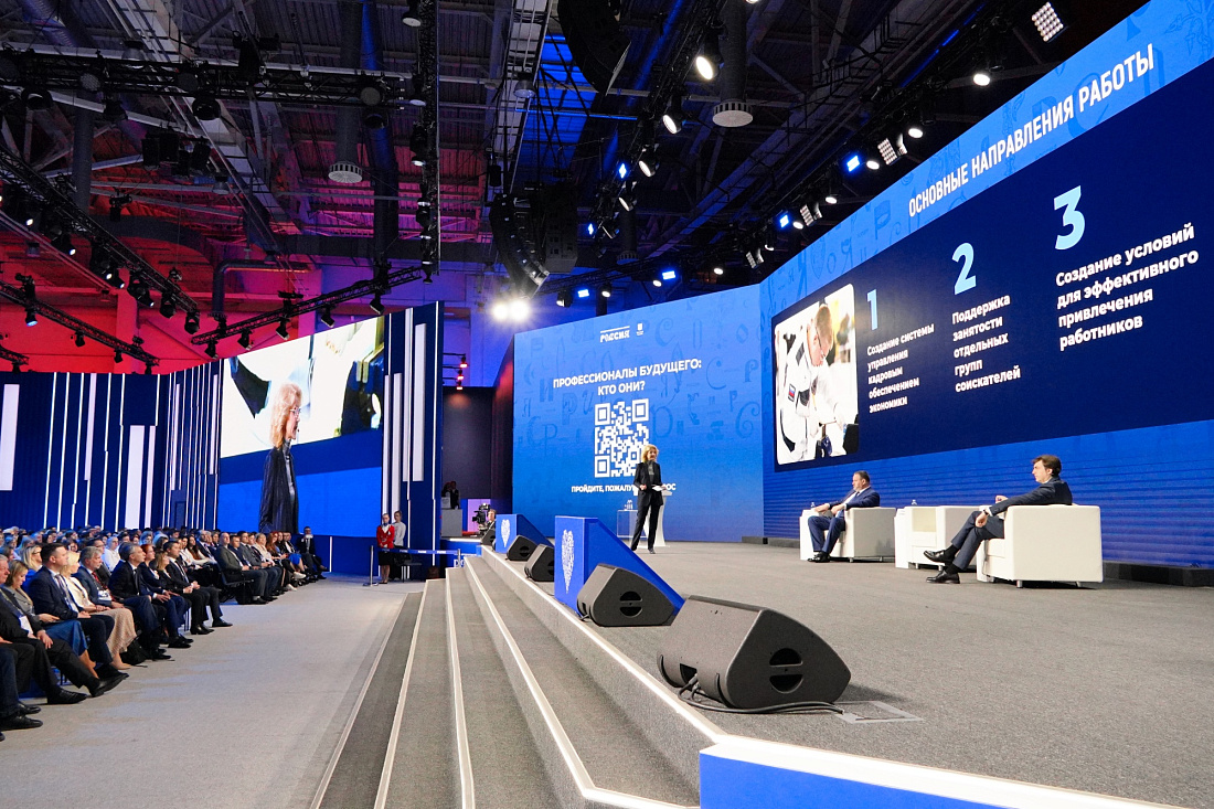 На Международной выставке-форуме «Россия» в рамках Дня национальных приоритетов «Кадры» прошла пленарная сессия «Возможности будущего: кадры». Ее участники обсудили актуальные вызовы современной экономики в части подготовки востребованных кадров, а также выстраивание системы образования в соответствии с потребностями рынка труда.