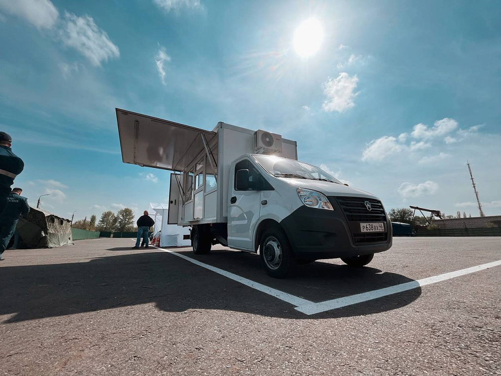 На сегодня в муниципальных службах торговли и питания более 400 человек, свыше 90 единиц техники, около двух десятков полевых кухонь, 40 автолавок. Возможности одной из них как раз и продемонстрировали на тренировке. Этот автомагазин в числе 15 других в марте прибыл в регион за счет федерального бюджета.