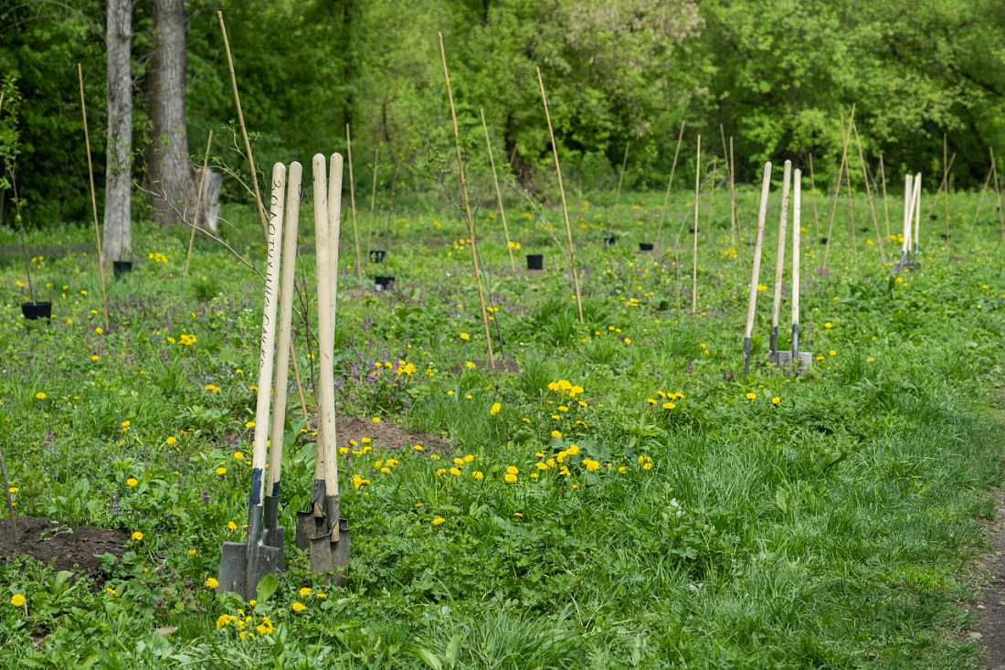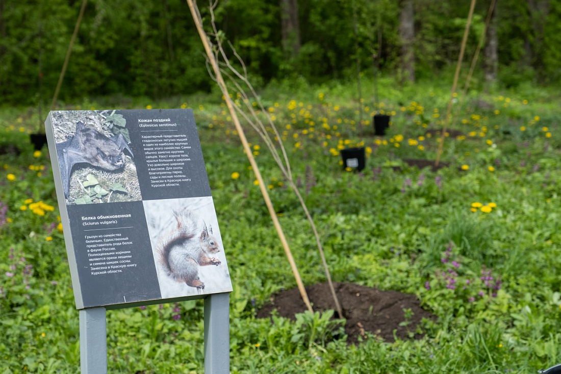 Молодые саженцы будут расти взамен 73 спиленных старых деревьев. Всего здесь высаживают 200 новых деревьев. Благоустройство общественной территории продолжается, в настоящий момент специалисты АНО «Центр компетенций развития городской среды Курской области» занимаются проектированием экотропы.