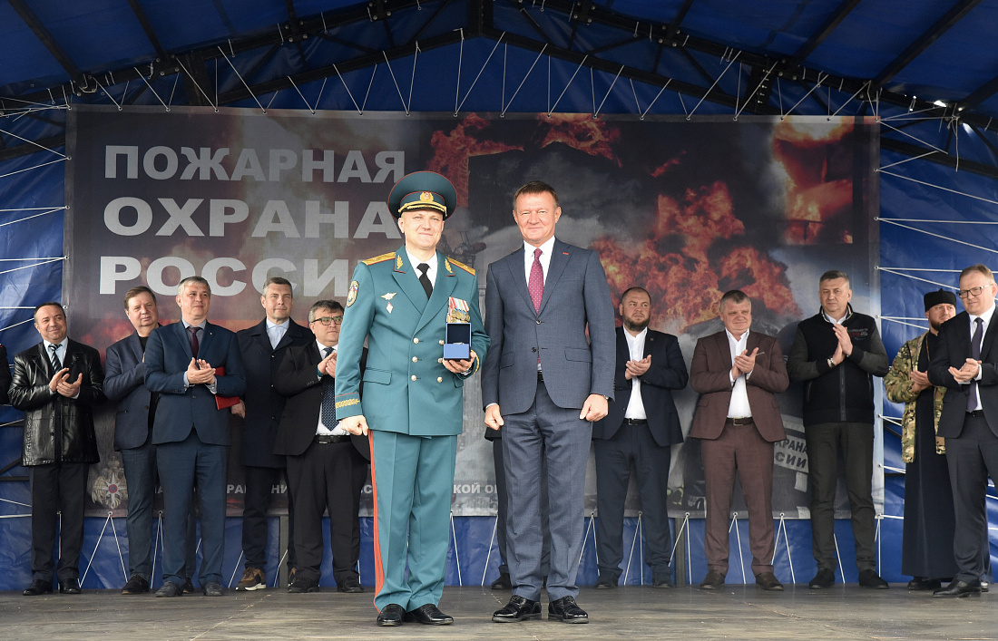 Кроме того, глава региона отметил наградами отличившихся работников пожарной охраны. Среди отмеченных были сотрудники приграничных районов.
