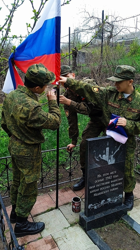 Юнармейцы приводят в порядок памятные знаки и места воинских захоронений в преддверии Дня Победы