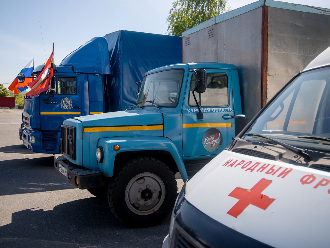 В составе конвоя автомобили, техника для наблюдения и разведки, медицинские принадлежности, строительные материалы, масксети, освященные пасхальные куличи, письма школьников ко Дню Победы. Бойцы на передовой получат также послания посетителей стенда Курской области на Международной выставке-форуме «Россия», принявших участие в акции «Письмо солдату», которую провело Министерство информации и общественных коммуникаций региона. Отдельная партия помощи была передана в подшефный поселок Мангуш.