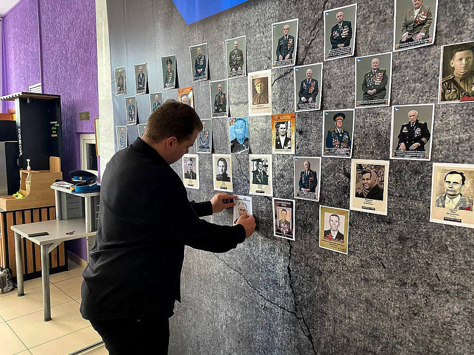 В преддверии 9 Мая любой желающий может прикрепить к стене портрет своего родственника, принимавшего участие в военных действиях, чтобы сохранить память о героическом прошлом нашей страны.