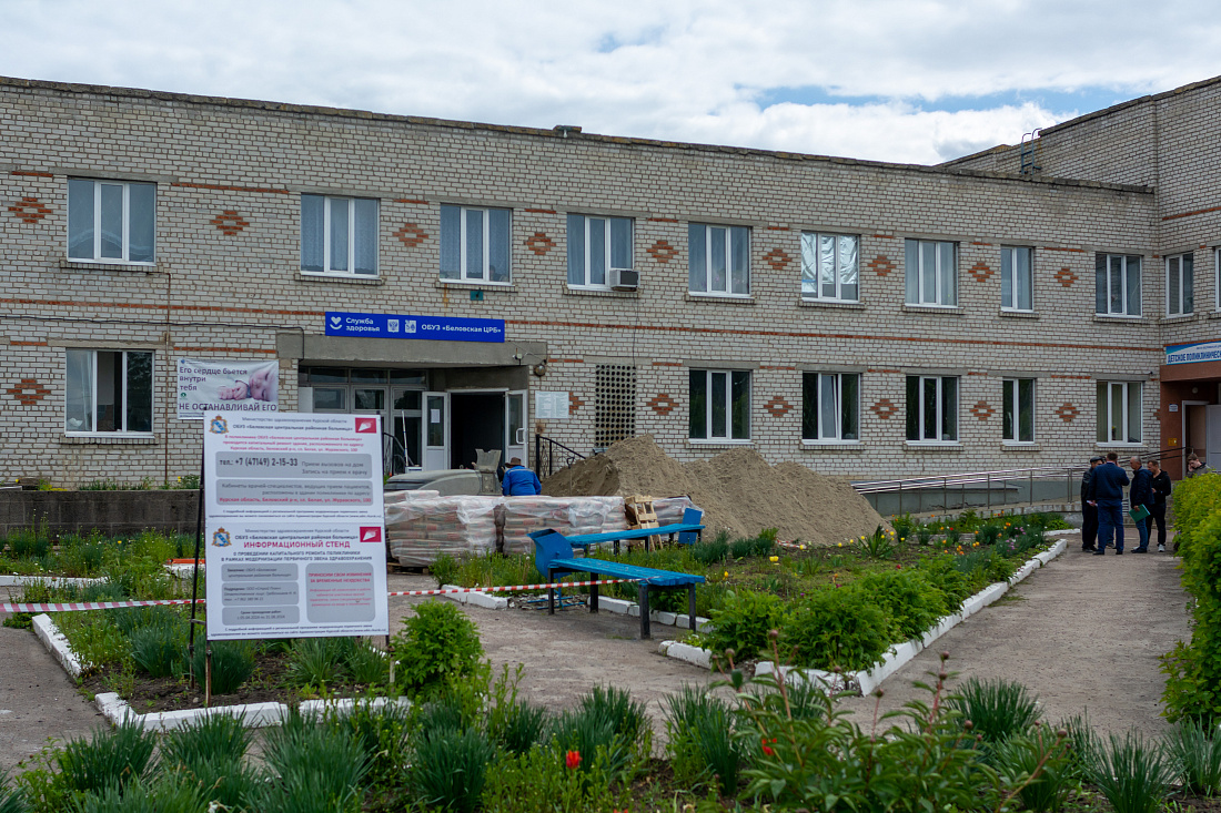 Врио заместителя губернатора Курской области Андрей Белостоцкий посетил Беловскую ЦРБ. Он осмотрел ход капитального ремонта поликлиники. Ее реконструкция проводится по программе модернизации первичного звена здравоохранения в рамках нацпроекта «Здравоохранение».