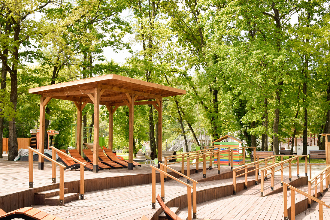 На территории парка появились модульные отели — глэмпинги, были обустроены пляж и лодочная станция. Сейчас здесь продолжается монтаж новых домиков для отдыха.