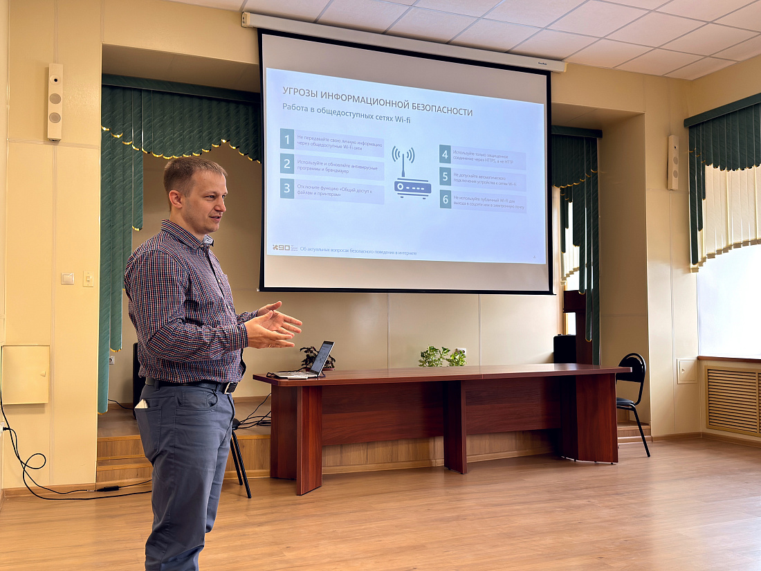 В качестве приглашенного гостя на первом занятии выступил специалист по адресной коммуникации ЦУР Курской области Никита Цибуля. Он рассказал о защите персональных данных и безопасном поведении при общении в социальных сетях.