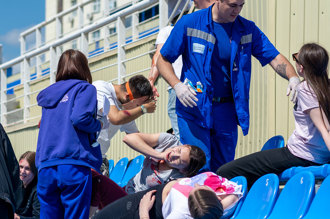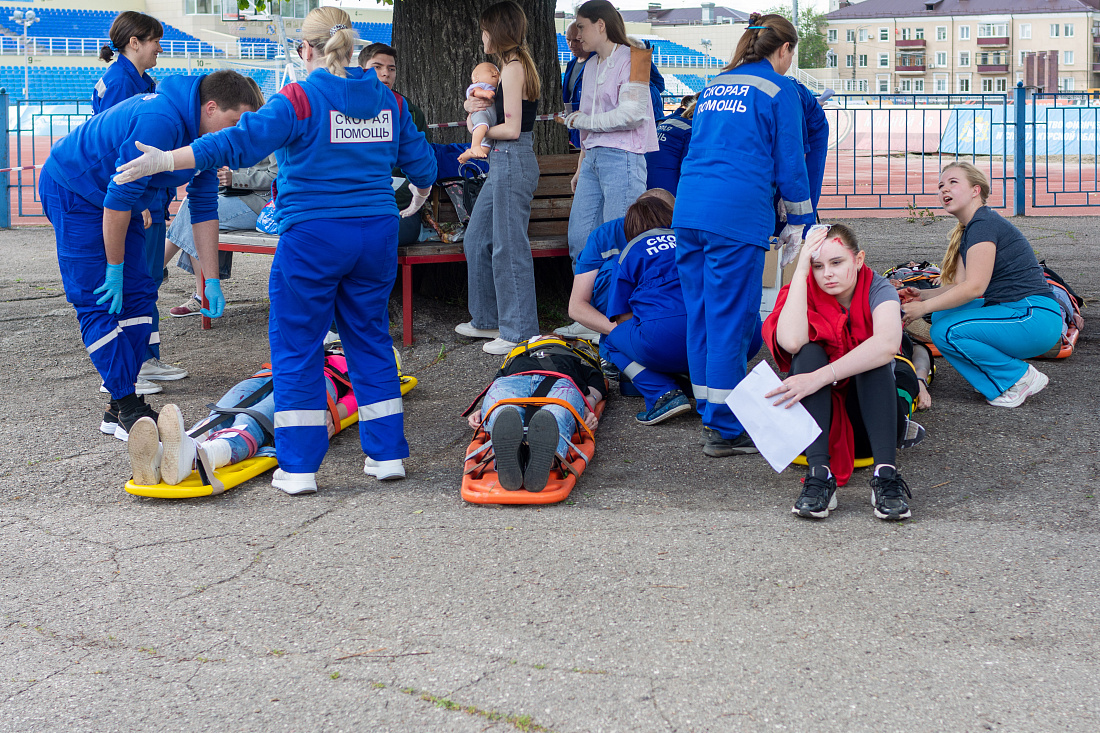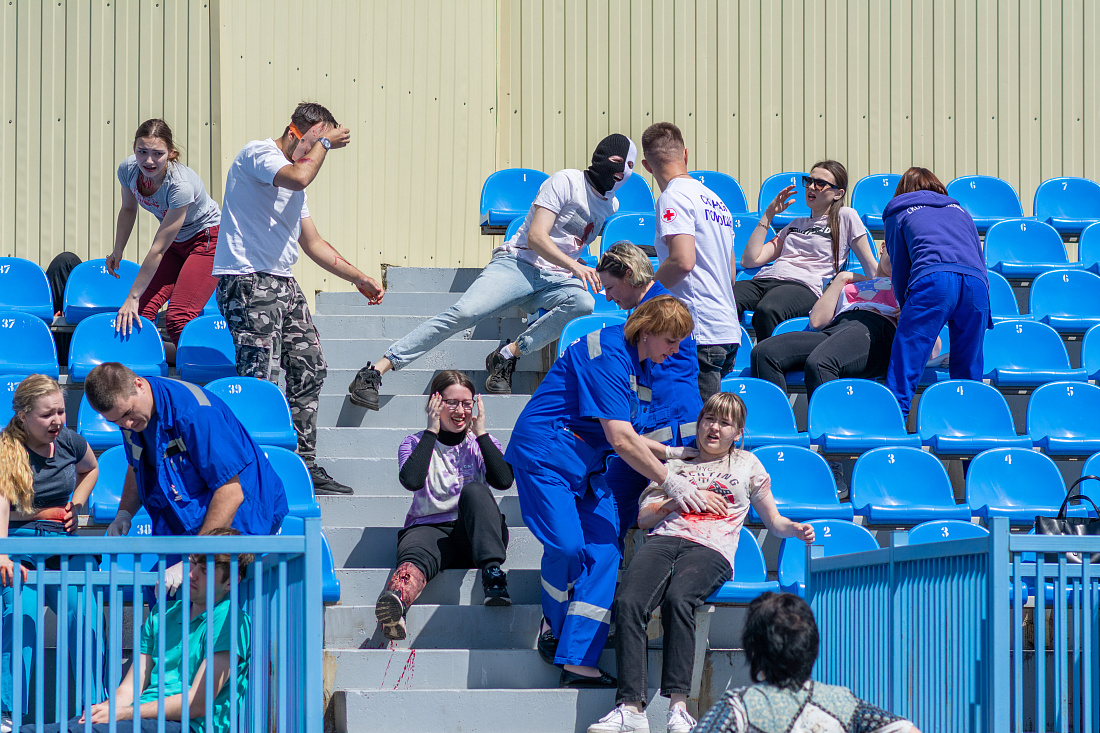 В учениях были задействованы 180 специалистов курских и районных бригад. Они тренировались оказывать помощь в условиях крупных чрезвычайных ситуаций. Пострадавших изображали 70 волонтеров Российского Красного Креста.