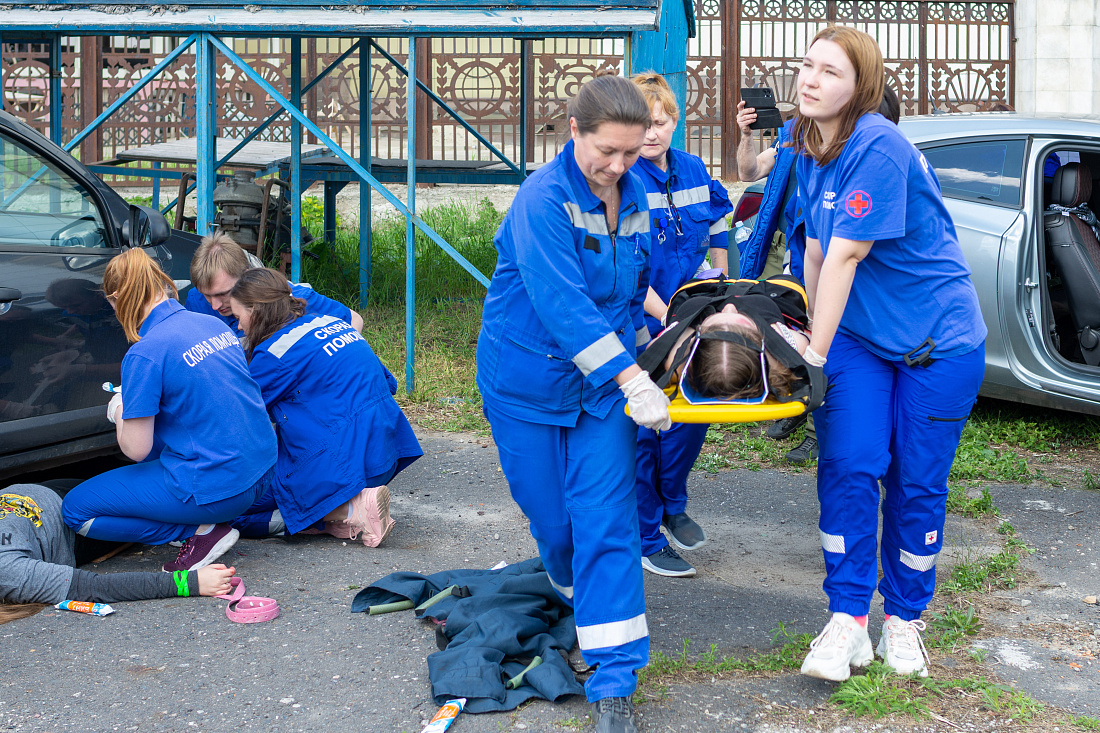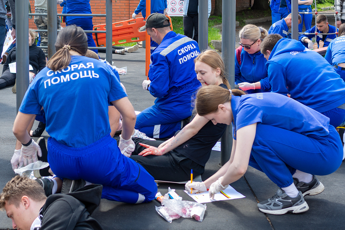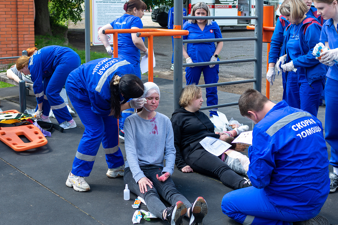 По легенде, служба СМП оказывала помощь пострадавшим в трех крупных ЧП: массовая драка на стадионе, большое ДТП и обрушение дома. На каждой площадке были свои характерные особенности.