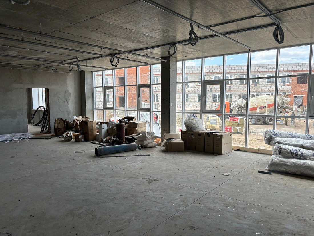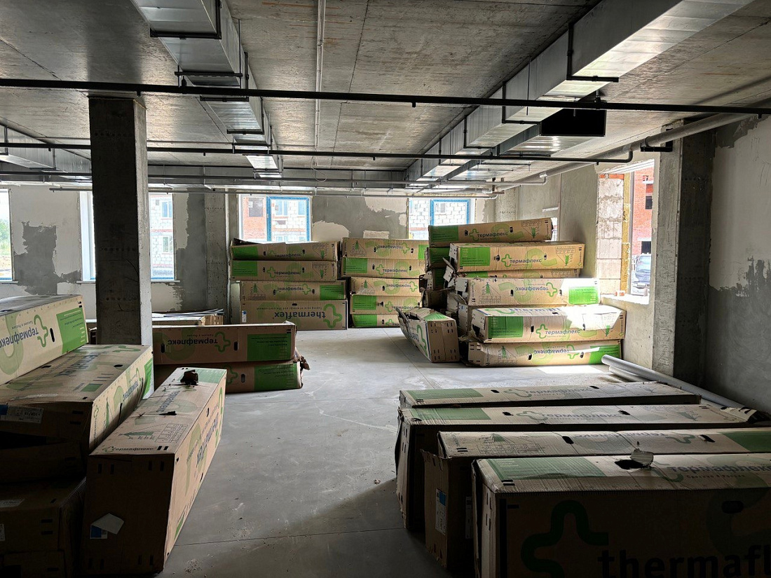 Сейчас в помещениях пищеблока, подсобных и хозяйственных помещениях ведется облицовка стен керамической плиткой. Завершены работы по прокладке уличных сетей и коммуникаций, подрядная организация приступила к планировке территории и подготовке к благоустройству.