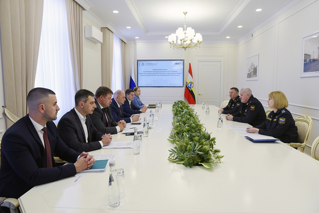 Врио губернатора Курской области Алексей Смирнов провел рабочую встречу с заместителем директора ФССП России – заместителем главного судебного пристава РФ Алексеем Рагозиным.
