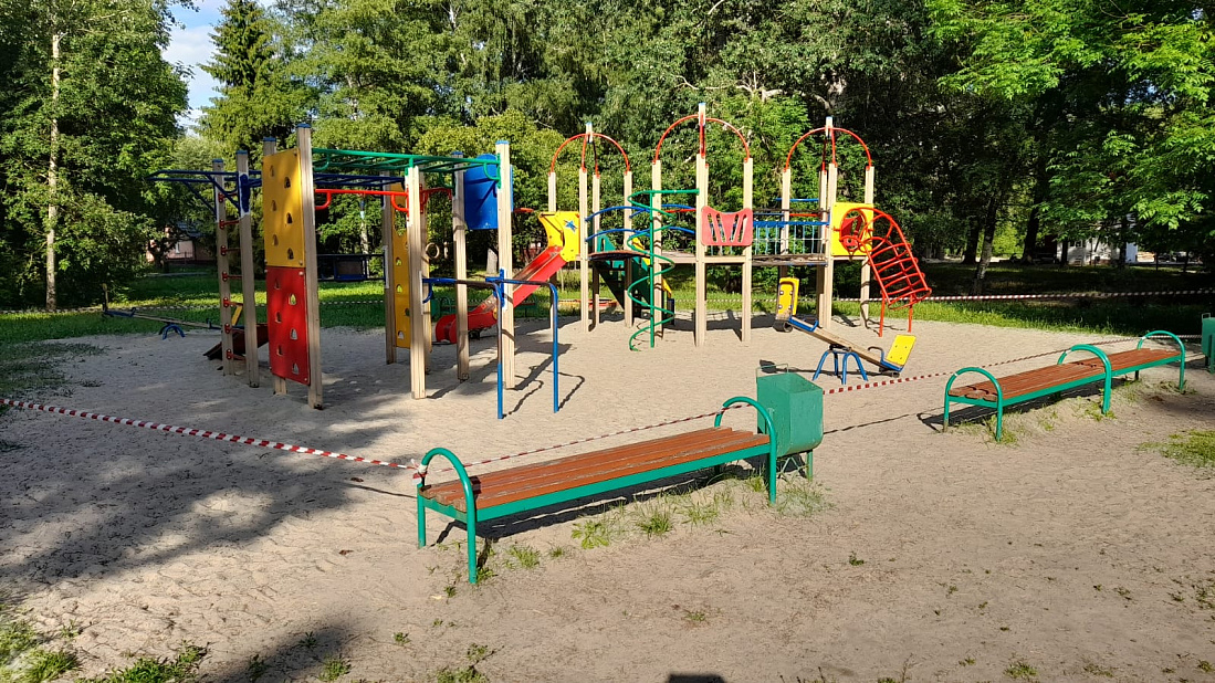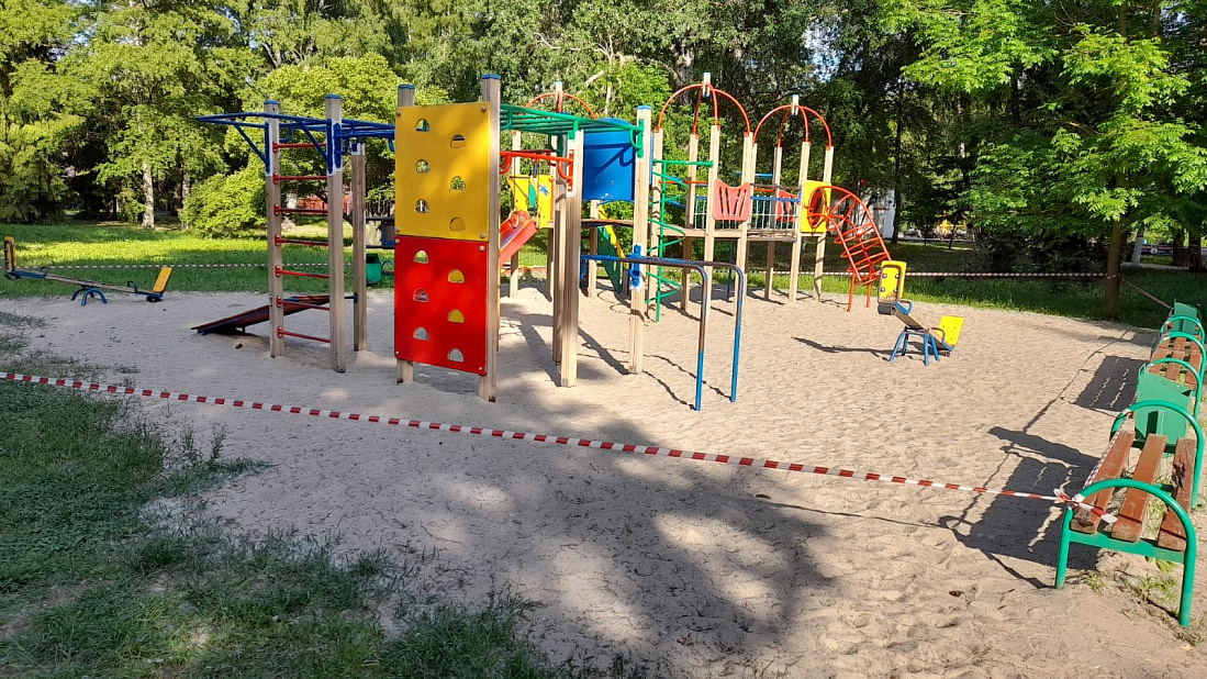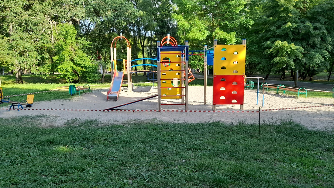 Сейчас территория детской площадки огорожена сигнальной лентой. Администрация парка просит посетителей воздержаться от ее использования до окончания ремонтных работ, они запланированы на конец лета.