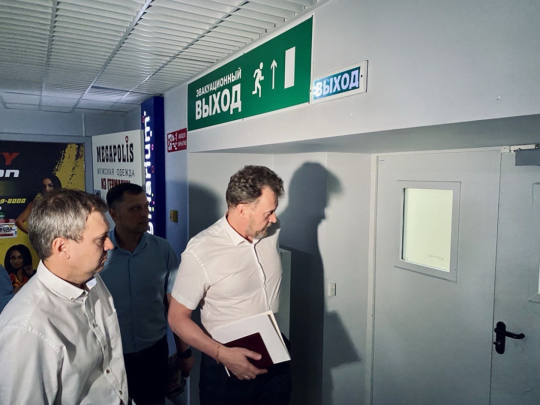 По поручению врио губернатора Алексея Смирнова в торговом центре «МегаГРИНН» врио министра промышленности, торговли и предпринимательства Курской области Михаил Аксенов и заместитель председателя комитета региональной безопасности Дмитрий Демьяненко осмотрели эвакуационные выходы.