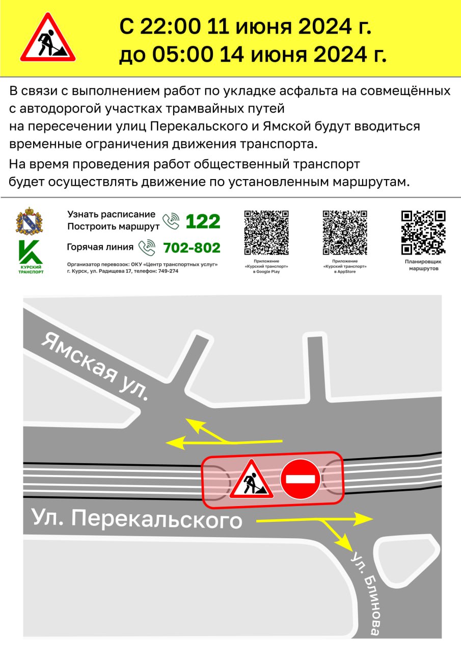 С 22:00 11 июня до 05:00 14 июня работы будут проводиться на пересечении улиц Перекальского и Ямской.