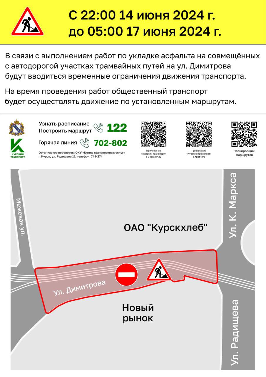 С 22:00 14 июня до 05:00 17 июня работы будут проводиться на улице Димитрова.