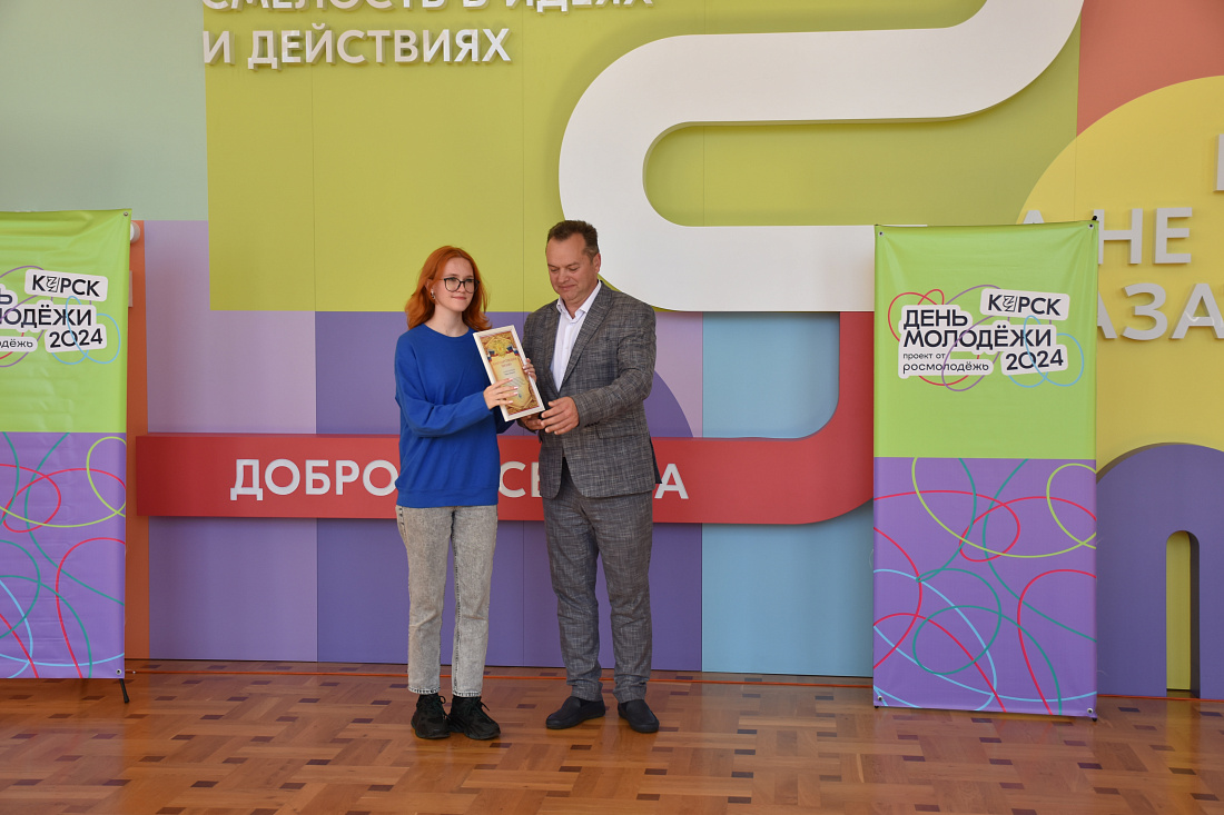 Также состоялось награждение волонтеров федерального проекта «Формирование комфортной городской среды». Награды самым активным волонтерам вручил врио заместителя министра жилищно-коммунального хозяйства и ТЭК Курской области Андрей Никулин.