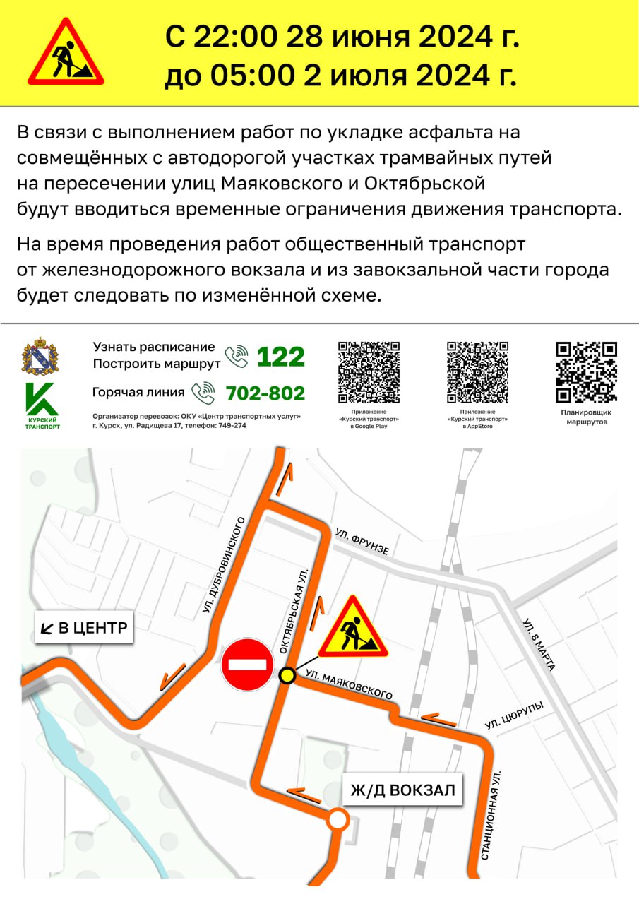 В Курске временно ограничат движение транспорта на пересечении улиц Маяковского и Октябрьской