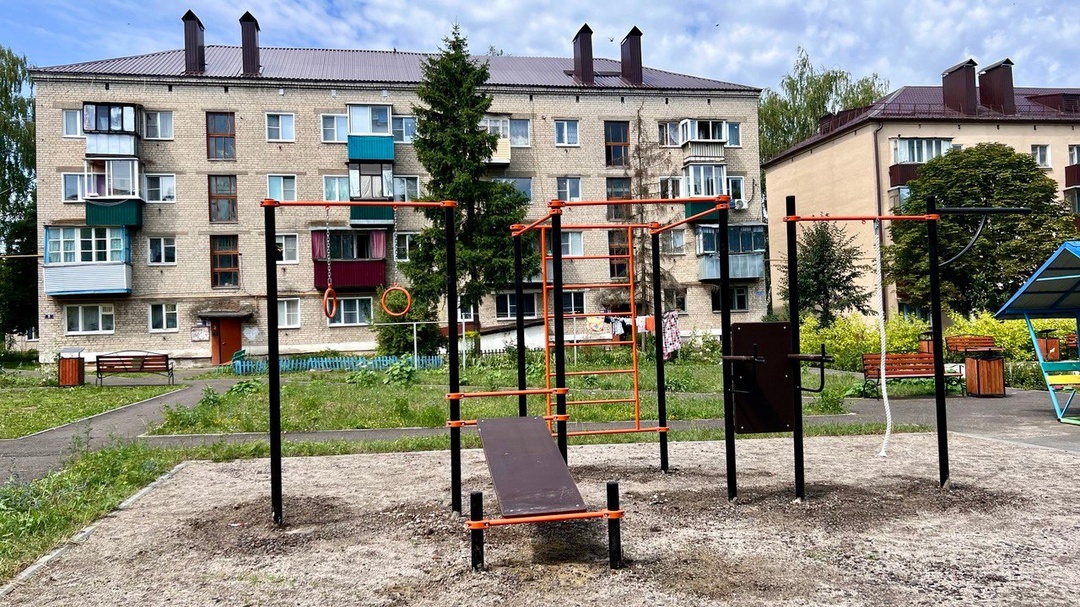 В городе Щигры на пересечении улиц Лермонтова и Чапаева обновлена зона отдыха, установлено спортивное оборудование с элементами в стиле воркаут.