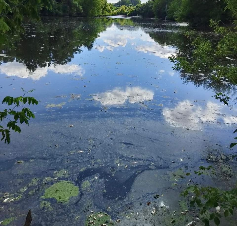 В ходе обследования береговой полосы водного объекта по обоим берегам был обнаружен мор рыбы. Источников сброса сточных и иных вод не обнаружено. Водная гладь имеет зеленый цвет, присущий при цветении водорослей. В воздухе ощущался запах, не свойственный атмосферному.